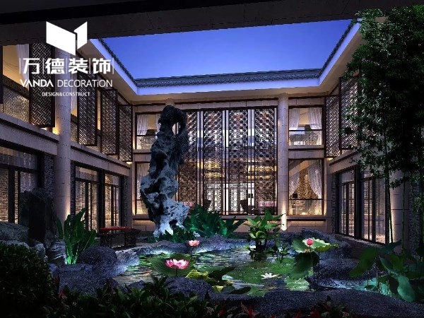 重庆大昌古镇酒店的设计理念是提炼当地的历史文化内涵,极力将其文化元素倾注融入于建筑空间,营造和提升大昌古镇的文化特色。如地毯淡雅的绿色圈形图案,如同望着峡谷水流的波纹,休闲宁静的感觉油然而生。方块形式的绿植墙,构建了阳光和愉悦的气息,凝造一股积极向上的自然归属感 。吊灯的造型和色彩也从不同的手法表现出东方元素,鲜红的灯笼在低调的灰色背景墙上更显亮眼与韵味,大堂的吊灯被黑色网状线条所笼罩,流露出一股神秘高贵与细腻的精致感。